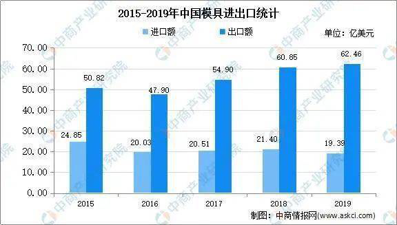In recent years, my country's mold industry has achieved rapid improvement in manufacturing technology through technology introduction, digestion and absorption, and re-innovation. The specialized production capacity of mold companies has been greatly enhanced, the modern mold industry system has basically formed, and the industry has achieved rapid development. The manufacturing technology of mold products reaches or approaches the international level, the quality is more reliable, and the international competitiveness is significantly enhanced. my country's mold products occupy an increasingly important position in the international procurement pattern. Data show that in 2019, my country's mold export value reached 6.246 billion U.S. dollars, and my country's mold import value in 2019 was 1.939 billion U.S. dollars, a year-on-year decrease of 9.37%.